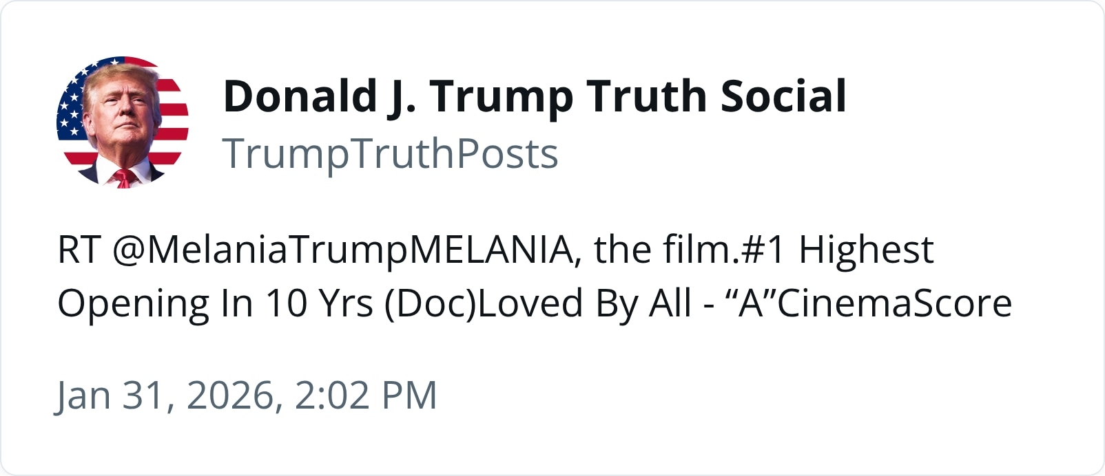 PRESIDENT DONALD J TRUMP @POTUS45https://www.donaldjtrump.com/https://www.thetrumparchive.com/https://x.com/realDonaldTrumphttps://truthsocial.com/@realDonaldTrumphttps://rumble.com/c/DonaldTrumphttps://www.tiktok.com/@realdonaldtrump>President Trump Officehttps://www.whitehouse.gov/https://www.youtube.com/user/whitehousehttps://www.flickr.com/photos/whitehouse/>Liz Harrington (Trump Spox) https://twitter.com/realLizUSA>Donald J Trump Presidential Libraryhttps://www.trumplibrary.gov/@realDonaldTrump @TeamTrump @TrumpWarRoom>b-but Trump hasnt done anything!ARCHIVED LINKS https://pastebin.com/eAhgNyeX NEW APPEARANCES>Pres Trump Participates in a Reception with Business Leaders, Davos, Switzerland 1/21/2026https://youtu.be/FnhWsFMAqO4>Pres Trump Special Address to the World Economic Forum, Davos, Switzerland 1/21/2026https://youtu.be/prdSj9caeQw>Pres Trump Briefs Members of the Media, Washington, DC 1/20/2026https://youtu.be/oNQoMMo8hYw>Pres Trump at Great, Historic Investment in Rural Health Roundtable, Washington, DC 1/16/2026https://youtu.be/roPFrhEclsc>Pres Trump Visits 2025 Stanley Cup Champions The Florida Panthers, Washington, DC 1/15/2026https://youtu.be/bauj7YDTNVk>Pres Trump Speaks to the Detroit Economic Club, Detroit, Michigan 1/13/2026https://youtu.be/lGTJgtL_QYw>Pres Trump Meets with Oil and Gas Executives, Washington, DC 1/9/2026https://youtu.be/iaE8lw8_x30>Pres Trump Remarks at the House GOP Member Retreat, Washington, DC 1/6/2026https://youtu.be/N6tzCCyfwFM>Pres Trump Holds Press Conference on Venezuela, Palm Beach, Florida 1/3/2026https://www.youtube.com/watch?v=SsdkClL2_bg>TrumpVideo: WE WILL WIN 6/19/23https://rumble.com/v2v6m2a>MAKE AMERICA GREAT AGAIN, AGAIN! 10/28/21https://rumble.com/voe8gm>God Bless the USA (Donald J Trump) 10/20/16https://youtu.be/O_PC_fy0fk0 OP pastebin: http://pastebin.com/X4KiALfhprev >>527437067
