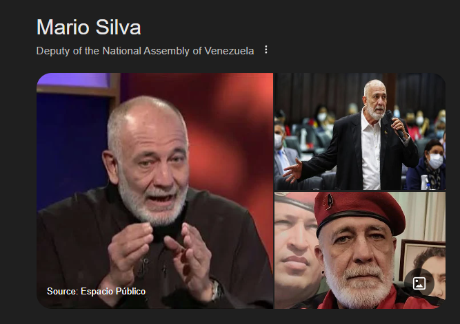 >>527448702>I assume the guy with Fidel is one of yours?Mario Silva García (born November 25, 1959 in Ciudad Bolívar) is a Venezuelan politician and television presenter, best known for being the host of the Venezuelan television program La Hojilla, which airs on the state-run Venezolana de Televisión, VTV, and the program Sobre el nido del cuco broadcast by Makunaima Kariña Radio 104.9FM. [1] He is a member of the United Socialist Party of Venezuela, and a deputy to the National Assembly of Venezuela. He was also a member of the National Constituent Assembly in 2017. He is currently the host and moderator of the weekly program, La hojilla.He's technically a white spaniard, his family comes from Spain, he's first generation born in VenezuelaHe more white than me kekw