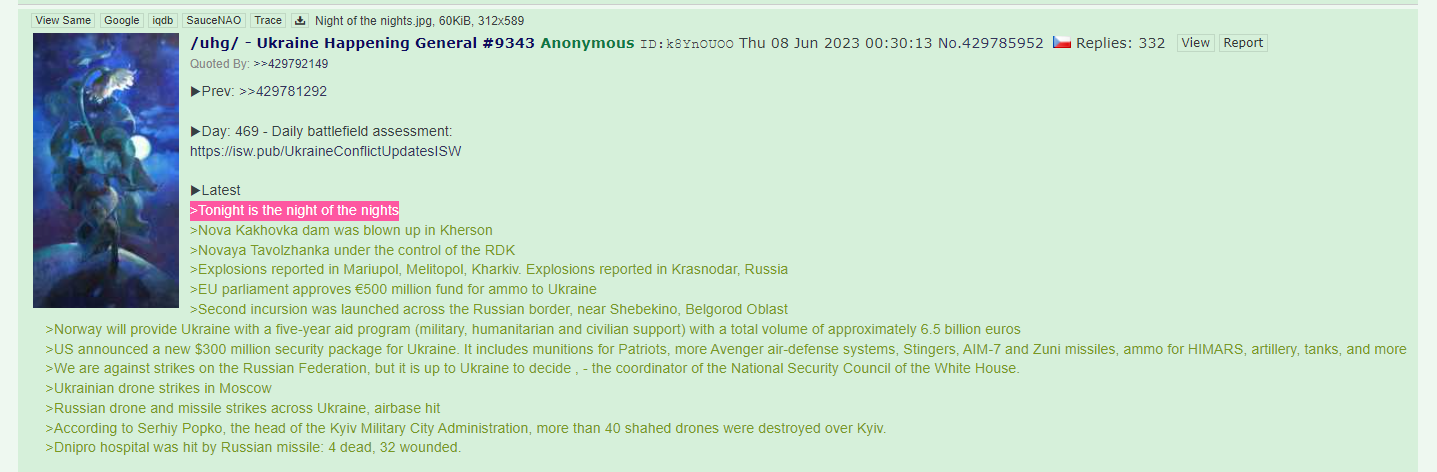 >>527447635As i said, completely expected kek, just wanted to check out how the only general i bothered to visit was still around.Speaking of, did you guys find out something interesting related to the war among the files?