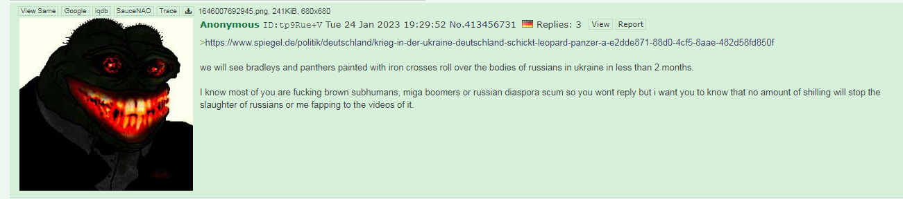 kek, came back to check what was going on, /pol/ is in ruins as expected, but /chug/ holds on, guess being completely centered around russia keeps you guys isolated, good to see you all fuckers still here.have something that i got from the earlier days.