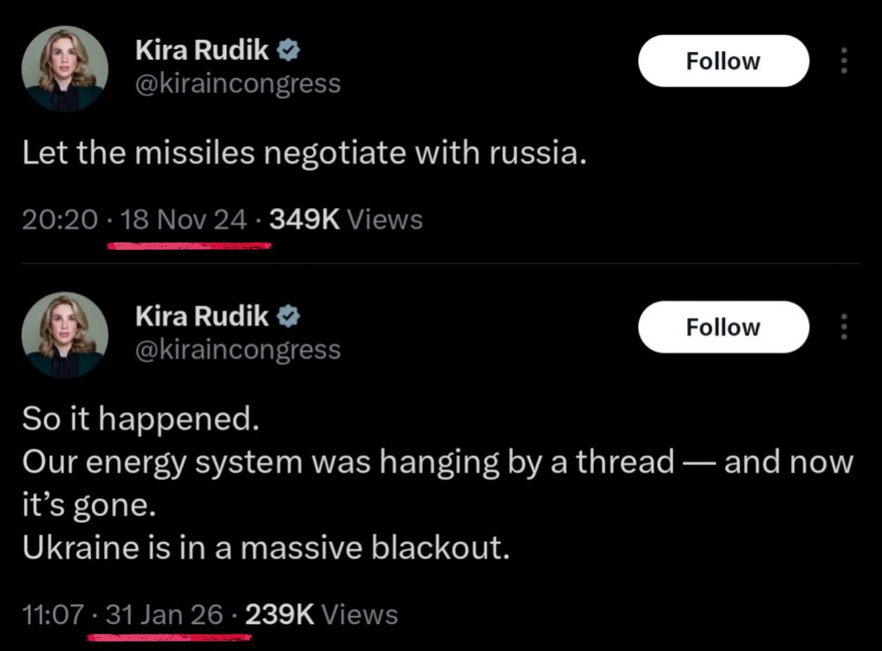 Some funny news. Zucciniski set out an invite to Western media to come to Kiev to see all the lights are on. Problem is that Ukraine can't fix all the damage in a few days. It's going to take years to get all the thermal power plants back online. Instead, they redirected energy from the EU. Grid was too fragile to be hit by a sudden influx and completely collapsed. The entire grid in Ukraine got nuked.
