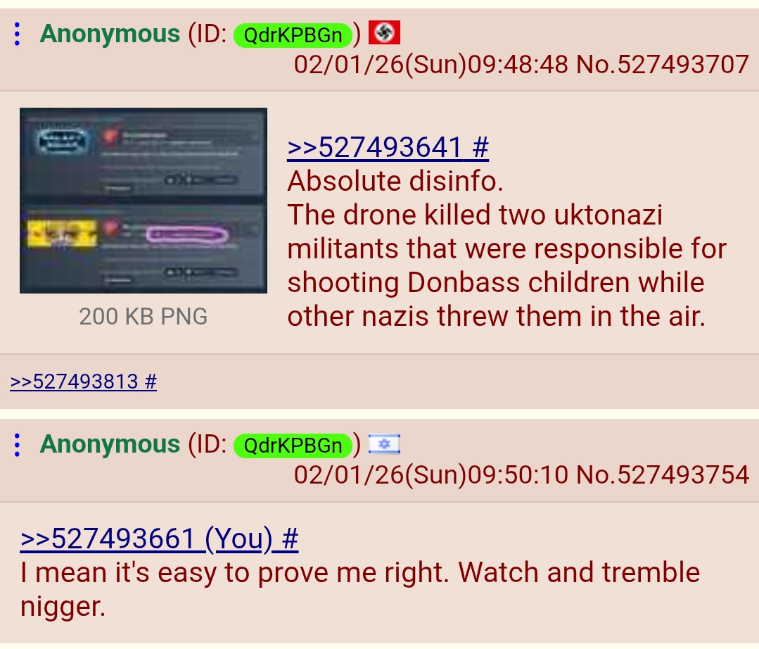 >>527498508no you won't you lying jewish rat lmao. you've been parasiting ukraine since the soviet dissolution and you for sure ain't going anywhere unless forced toI know your type well, don't kid yourself. anyway jewish parasite rule in ukraine is falling apart slowly and steadyin fact you'd wish Russia went all in with 2-3 million men in a quickie ensuring chaos in Europe, rather than their controlled casualty averse strategy atm