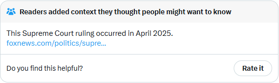 The Supreme Court hasn't issued any rulings today or yesterday. OP is either intentional clickbait, or fell for clickbait.