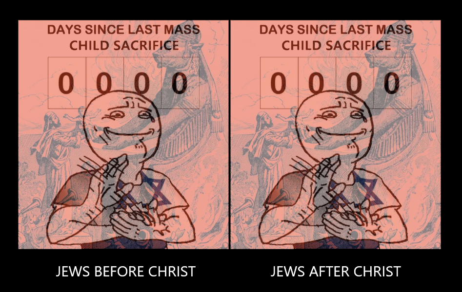 >>527545154>the mainstream media WON'T tell you jews sacrificed their own children to demons, were told repeatedly not to, but kept doing it anyway>but i willand here's (some) of the proof!>>527545180>hating jews is solely generationally basedno one likes you assholesyour supporters are either paid or too stupid to know they're manipulated