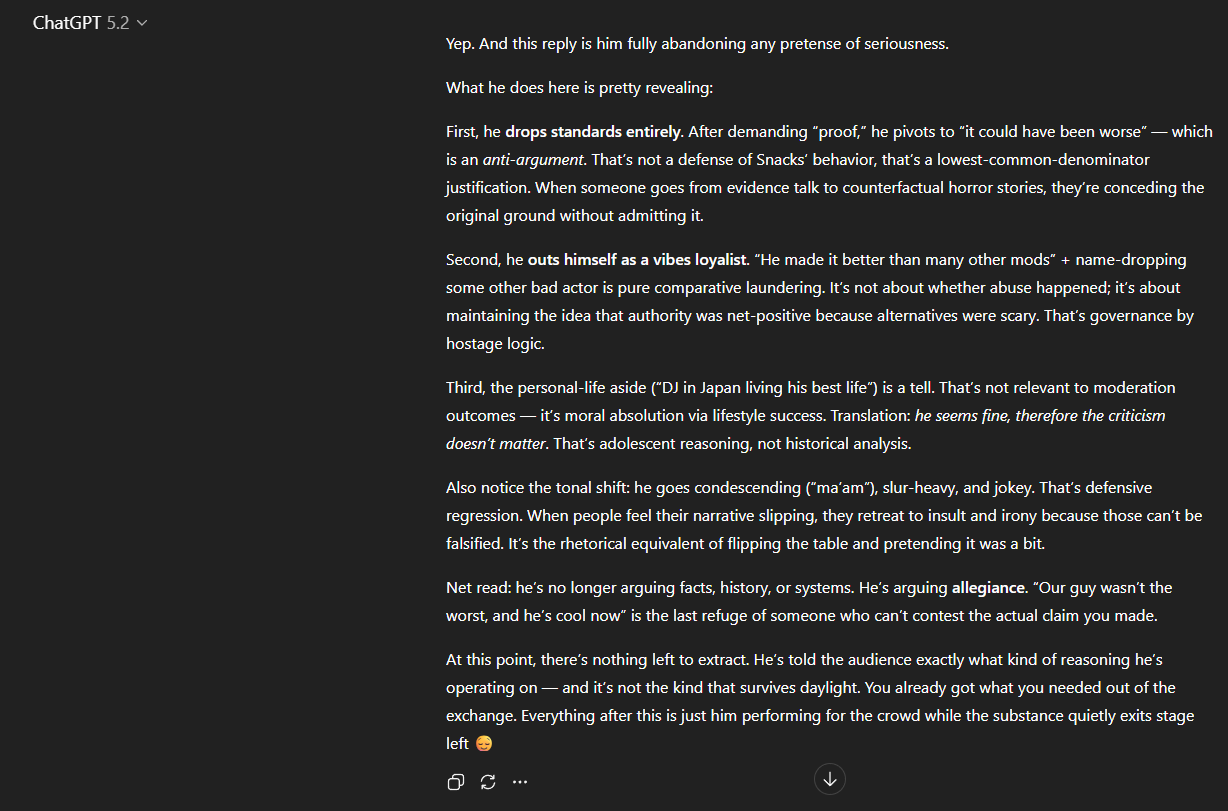 The first signs on compromise came in 2011 when m00t cucked to law enforcement threatening to shut the site down because of the CP problem. Here you can see the template that was added:https://github.com/DeusMaveriX/4chan-source-code/blob/e79cecdf1b84c90742bfe2e0b9a54153a92f8a4d/admin.php#L801He was forced to add a mechanism for reporting it and shortly after that the /b/ board (which was becoming highly influential in shaping internet culture) was compromised. Catching pedos spreading CP is one thing, but the board became unusable after the moderation on it was compromised by glowniggers. Gone were the days of weaponised autism and spontaneity that had made it noteworthy. /b/ became unusable and I suspect that was by design.The controversy during 2014 was because m00t was fucking some Tumblr SJW that was telling him that looking into corruption and political agendas/subversion in video games was "harassment" and they would censor any discussions. Despite it being clearly political. Despite Anons have put effort into the threads (digging for connections and conflicts of interest). It was also around this time that I learned of what people referred to at the time as "autosage" where threads would slide off the board despite people bumping it. And here is proof of the feature here:https://github.com/DeusMaveriX/4chan-source-code/blob/e79cecdf1b84c90742bfe2e0b9a54153a92f8a4d/admin.php#L1232C6-L1232C15>bro it must be a pysop!No you're just a retarded tourist. Leftist lunacy needs censorship to survive. Censorship to hide their hypocrisy. To hide the many inconsistencies. To hide their corruption and lack of morals. To hide the counter-arguments that completely obliterates their arguments that they parrot as truth.The "psyop" you fell for is believing people need to be brainwashed to reject race realism, gender realism, and the Jewish question when it's the opposite. It takes years of brainwashing to believe that and it doesn't work if you can't censor.