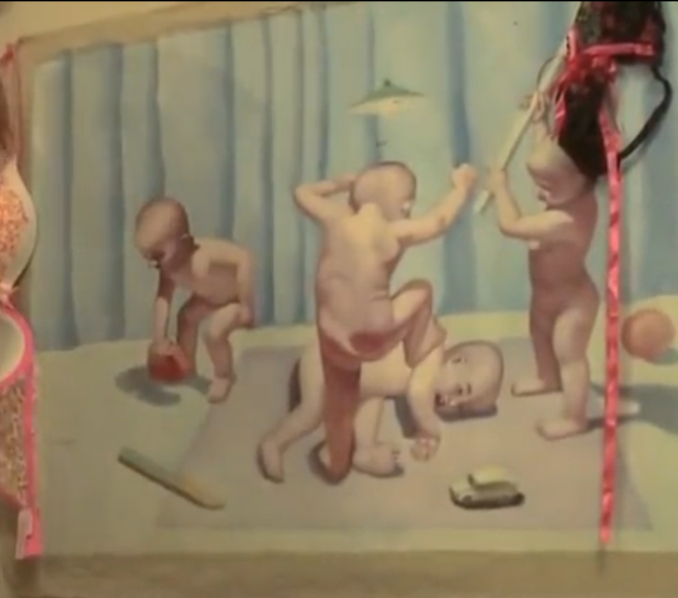 >>527567507Has anybody identified it yet?It's just using infants as a stylistic device to imply bullying is immature, that's the morbid underlying tone that's shared.