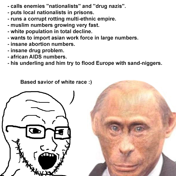 >Shouldn't you worry more about the subhuman kikes who rule Europe instead of the subhuman kike who rules Russia?Kek, that's all we've been saying. Let the subhuman be and stay in r*zzia