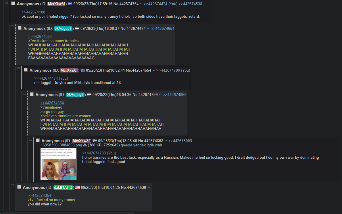 >>527590626the ukrops started killing Russians without provocation, what are you saying it's on Russia... all we did was defend fucking AmerifaggotI will celebrate when we drop bombs on you faggots.