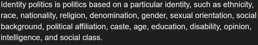 >>527600115>>527600213>>527600530>>527600853>>527600691Identity politics was a response to people noticing this and fighting back.