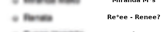>>527633334At the level of Gaussian blur the font matters a great deal because even small differences in the letter styles make it look very different. The JS fiddle is going to use the browser default (which is going to vary across browsers and platforms).Since you're trying to solve this: >>527622113 Despite the blur it looks like a heavily weighted (i.e. "thick") font. If I had to guess I'd say it's Andale Sans, https://8font.com/andale-sans-font/ which was used in the older versions of Google's products (and since it looks like the old gmail chat interface I'd bet money that's the font). If you use that it would give you a much more accurate comparison. Since you already have existing names you can use trial and error to get the right size and verify the font.