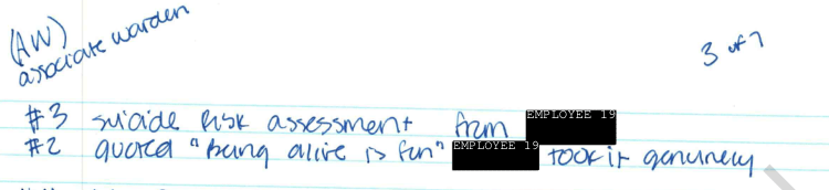 >>527638418Associate Warden at top- probably indicating the office(person) receiving this summary or possibly releasing it. Otherwise, insignificant? Epstein obviously would have been being sarcastic in saying “being alive is fun” while holed up in a jail cell. Employee 19 would apparently beg to differ, they took it genuinely. Maybe they are more autistic than I.