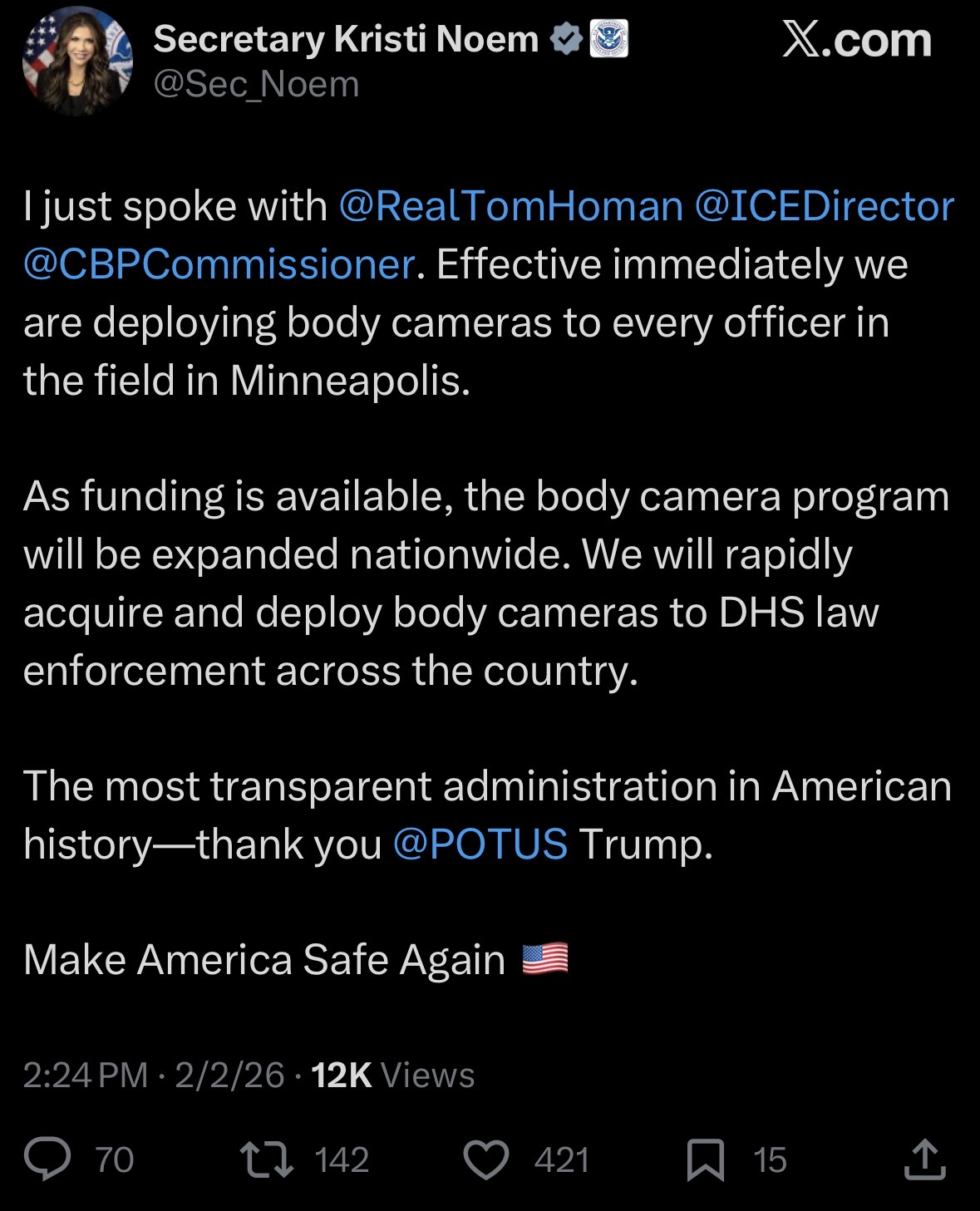 >>527620478All I could see is Noem saying that all feds are going to wear body cams in Minnie and that’s it. Why do /pol/cucks lie so much?