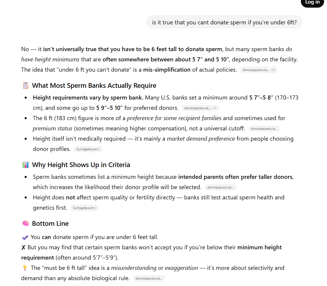 I have 6 biological children from donating sperm privately. I am 5'5" btw