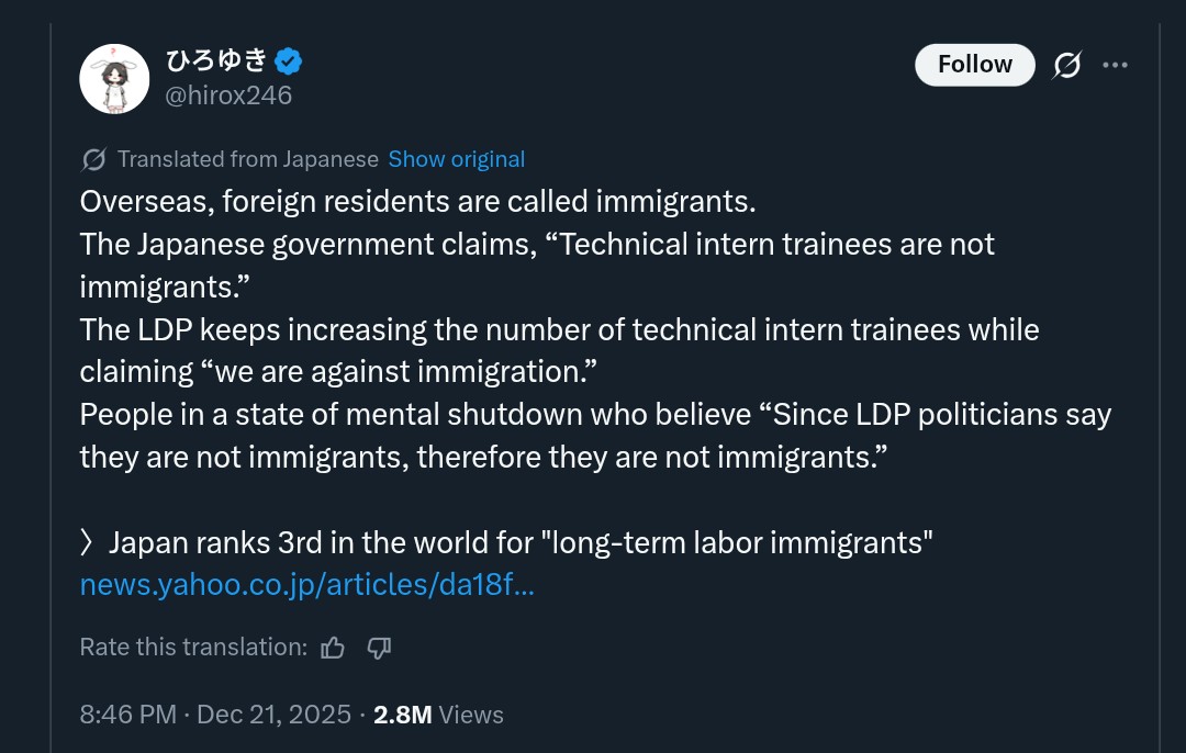 >>527643565Japan is holding an election next weekend, and the ruling party has pledged to move towards stricter immigration controls.