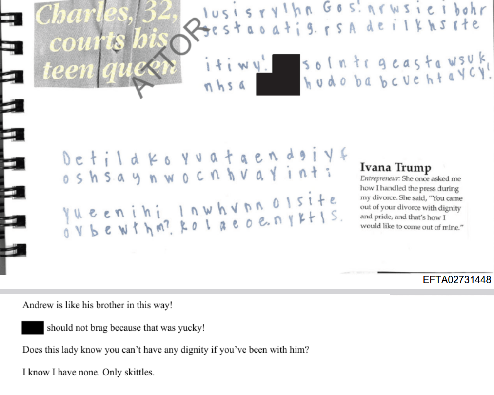These journals are the most damning evidence against all the people named in there. I HOPE THEY PROSECUTE EVERY SINGLE ONE OF THESE ASSHOLES.All the files with links:https://www.reddit.com/r/Epstein/comments/1qrtjiw/four_files_scanned_from_a_childs_journal/Unredacted name on the sono, the girl who wrote these journals:https://archive.4plebs.org/pol/thread/527428931/#527453928https://archive.4plebs.org/pol/thread/527428931/#527466381Leon Black Case, from which these journals come from:https://www.cnbc.com/2023/07/25/leon-black-accused-of-raping-teenager-at-jeffrey-epstein-townhouse.htmlhttps://www.newsweek.com/leon-black-accused-raping-autistic-jeffrey-epstein-sex-slave-1815663
