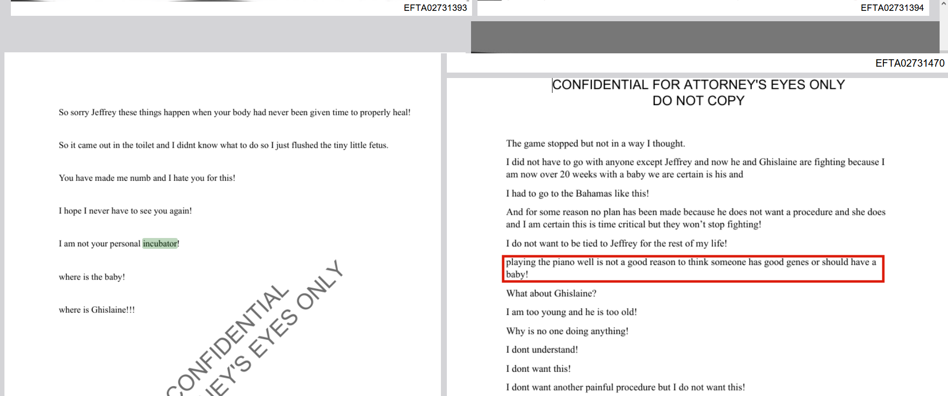 >>527651471>>527651508>>527652027>>527653064There's another file that includes all of these as well as all the text decoded to be easily legible.It's a diary and ramblings of a girl that was kept as a breeding slave.https://www.justice.gov/epstein/files/DataSet%2012/EFTA02731361.pdf