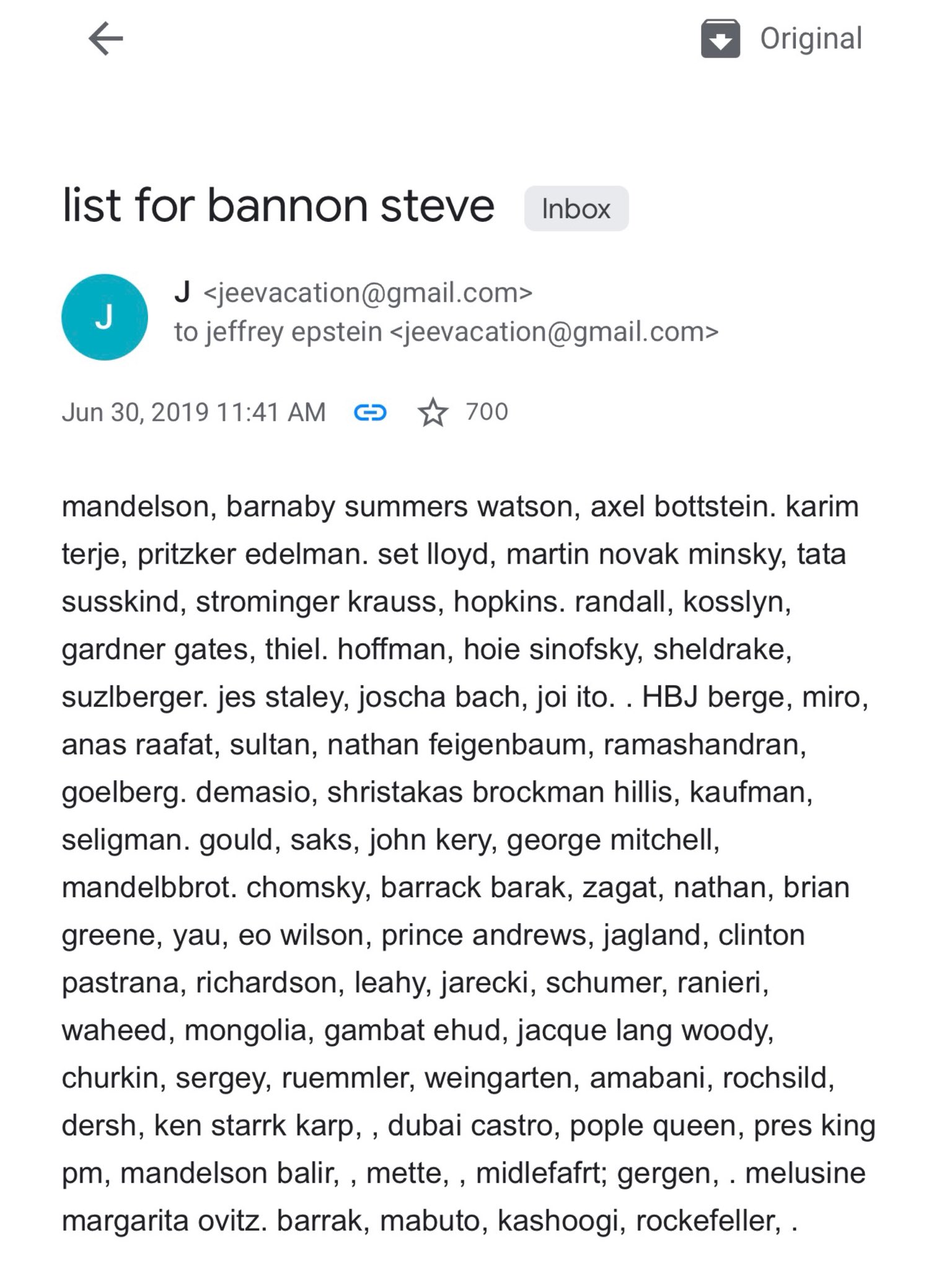 >>527660733He's also on the complete list of his main accomplices that Epstein was going to send to Bannon ten days before his "suicide".