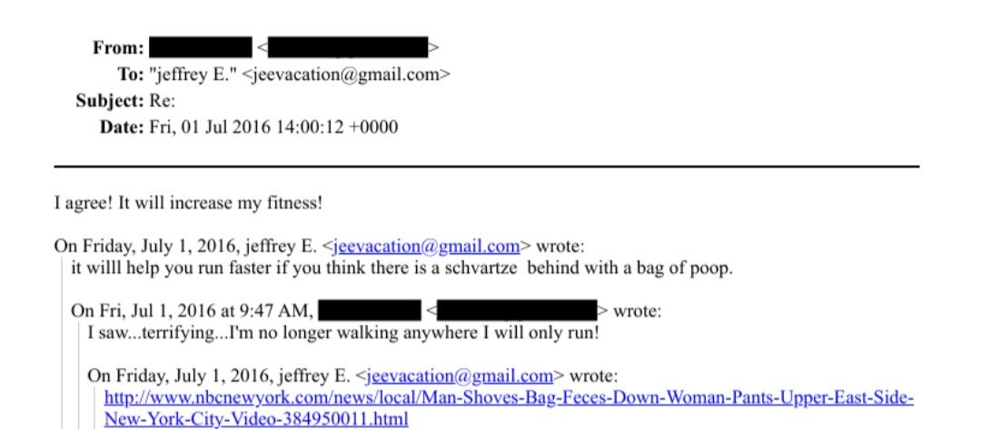 >>527655269>>527655364and the unredaction of the name probably comes a long way from the Leon Black case, as a redditor speculates that was how Black's attorney's quickly knew the name of Jane Doe - or you know, because he was guilty and he knew who she was >These two articles have been brought to my attention. They mention a lawsuit against Leon Black by a Jane Doe represented by Wigdor LLC, the law firm that the lawyer is stated to be working for in the email files. The trauma journal files linked above also mention an airline providing accommodations to the victim for her autism, which further matches the description of the Jane Doe in both articles. The NY Post article is of particular interest because it states that Leon Black’s defense team learned the identity of Jane Doe and submitted to evidence statements made against her by her family (the same family that literally sold her to Epstein and Maxwell according to the journal files). That article also states that Wigdor LLC asked to withdraw from the case because they were threatened with sanctions. I have a theory that the personal information mistakenly included in file EFTA00155037, which starts with an “Exhibit C” title card showing that it was submitted as evidence in a court case, may have been how Leon Black’s team discovered the identity of Jane Doe. It should be noted that the identity of Jane Doe is not mentioned in the articles, nor is it publicly available information in relation to the lawsuit.