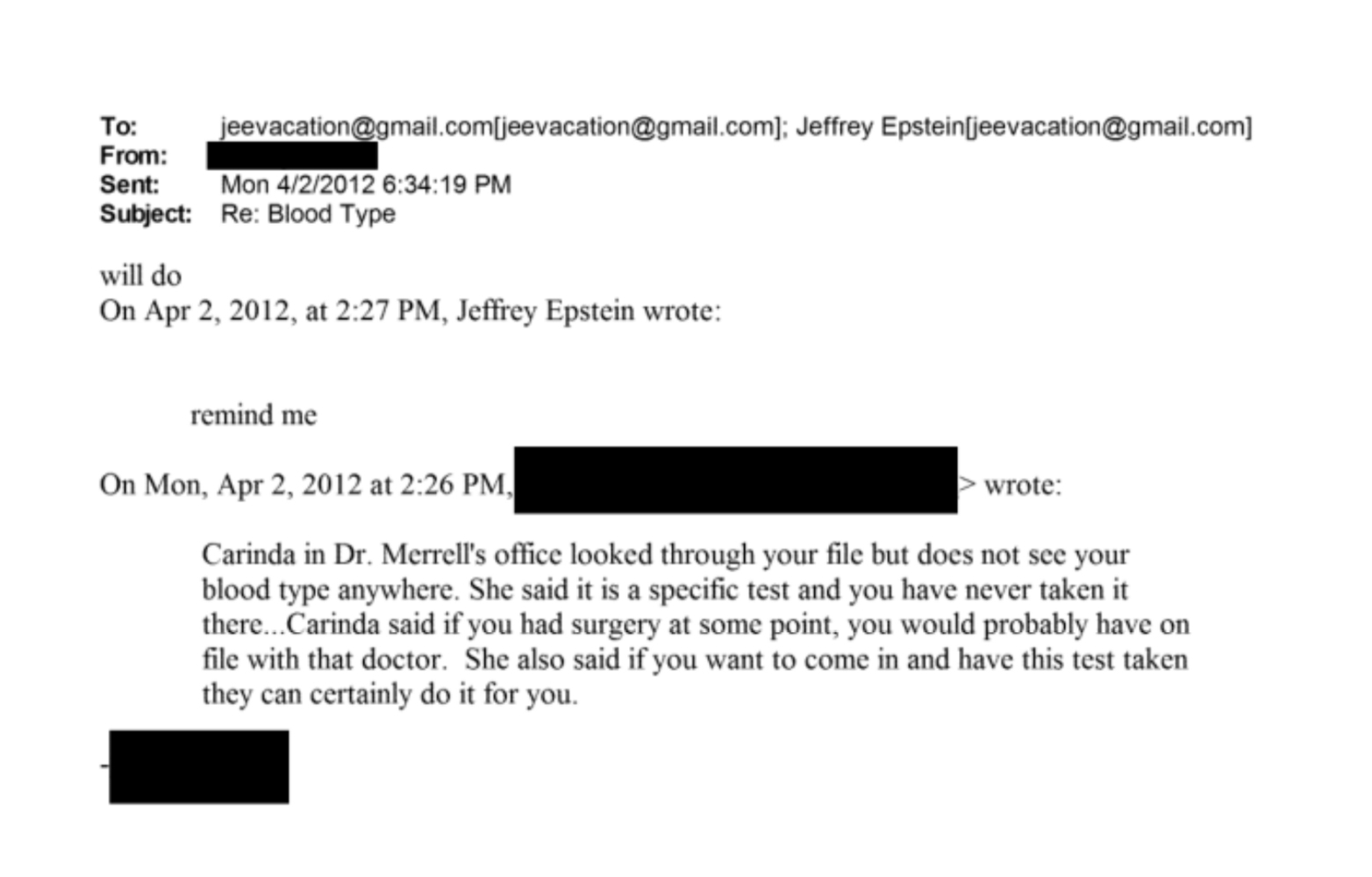 EMAILS ABOUT THE JOURNAL GIRL AND OTHER GIRLS SUING LEON BLACK>Emails discussing calls with the girl’s lawyer. They discussed other girls who allege to be victims of Leon Black.https://www.justice.gov/epstein/files/DataSet%2012/EFTA02731655.pdfhttps://www.justice.gov/epstein/files/DataSet%2012/EFTA02731729.pdfhttps://www.justice.gov/epstein/files/DataSet%2012/EFTA02731488.pdfhttps://www.justice.gov/epstein/files/DataSet%2012/EFTA02731737.pdf Excerpt:>Around 9:30am this morning I received a call from a woman who now lives in■ who told me she wanted to speak to me said that Leon Black raped her violently — years ago and has never told anyone about it other than her childhood best friend.>In short, the details she told me about what he did to her — are almost a perfect match about what my client told me —he violently bit down on her vulva, labia and clitoris. The biting would get harder and his teeth clamp down more when she yelled out in pain.>The woman this morning basically told me about the same biting ritual and that she could not breath she was in so much pain — it is too abnormal to make up.>She does not know my client — this person is older and says it happened in 2001— at Epstein's townhouse.