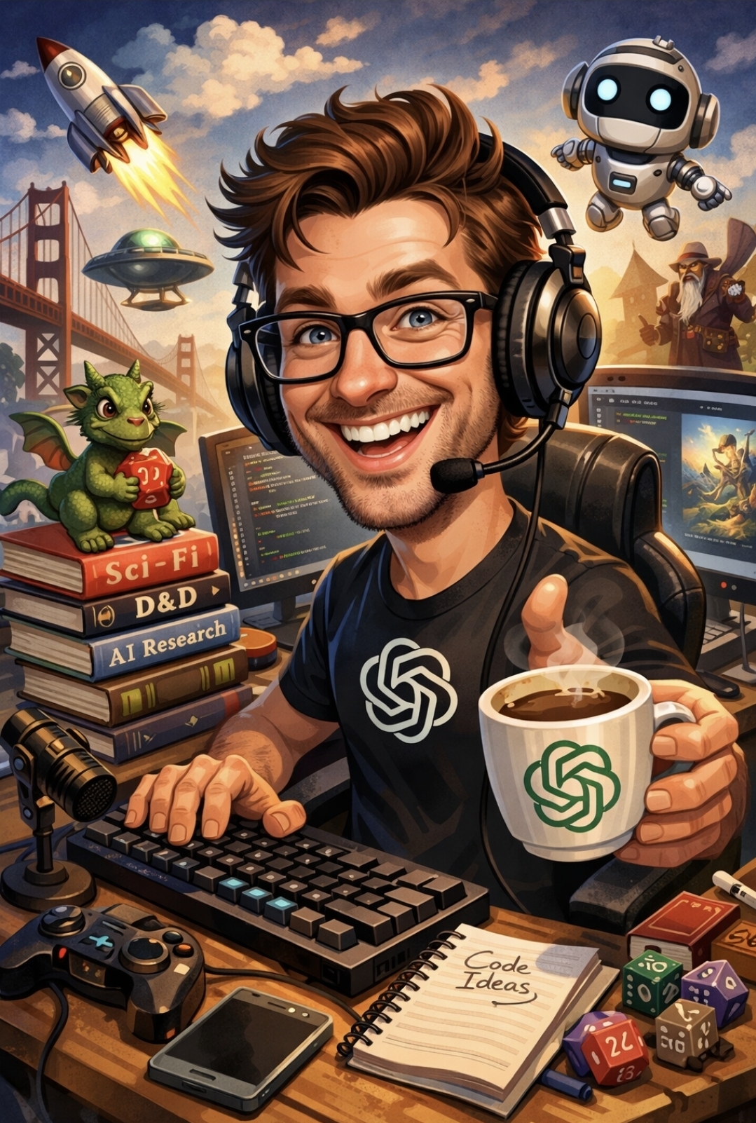 Go to ChatGPT and use this prompt:“Create a caricature of me and my job based on everything you know about me.” Share yours below!I have to say they didnt get things 100% right, but did get my streaming and podcast career correct.