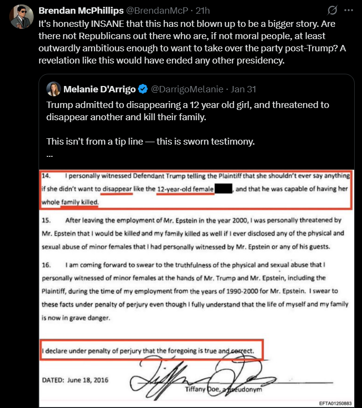 >Comer is giving Clintons until noon today to confirm they accept “standard deposition terms” — transcribed, filmed depositions in February with no time limit. If they don’t agree- contempt vote moves forward.