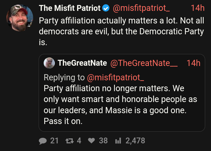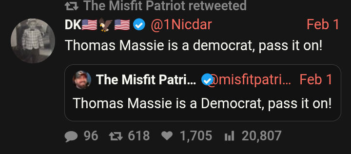 >>527673165>Thomas Massie is a Democrat, pass it on!
