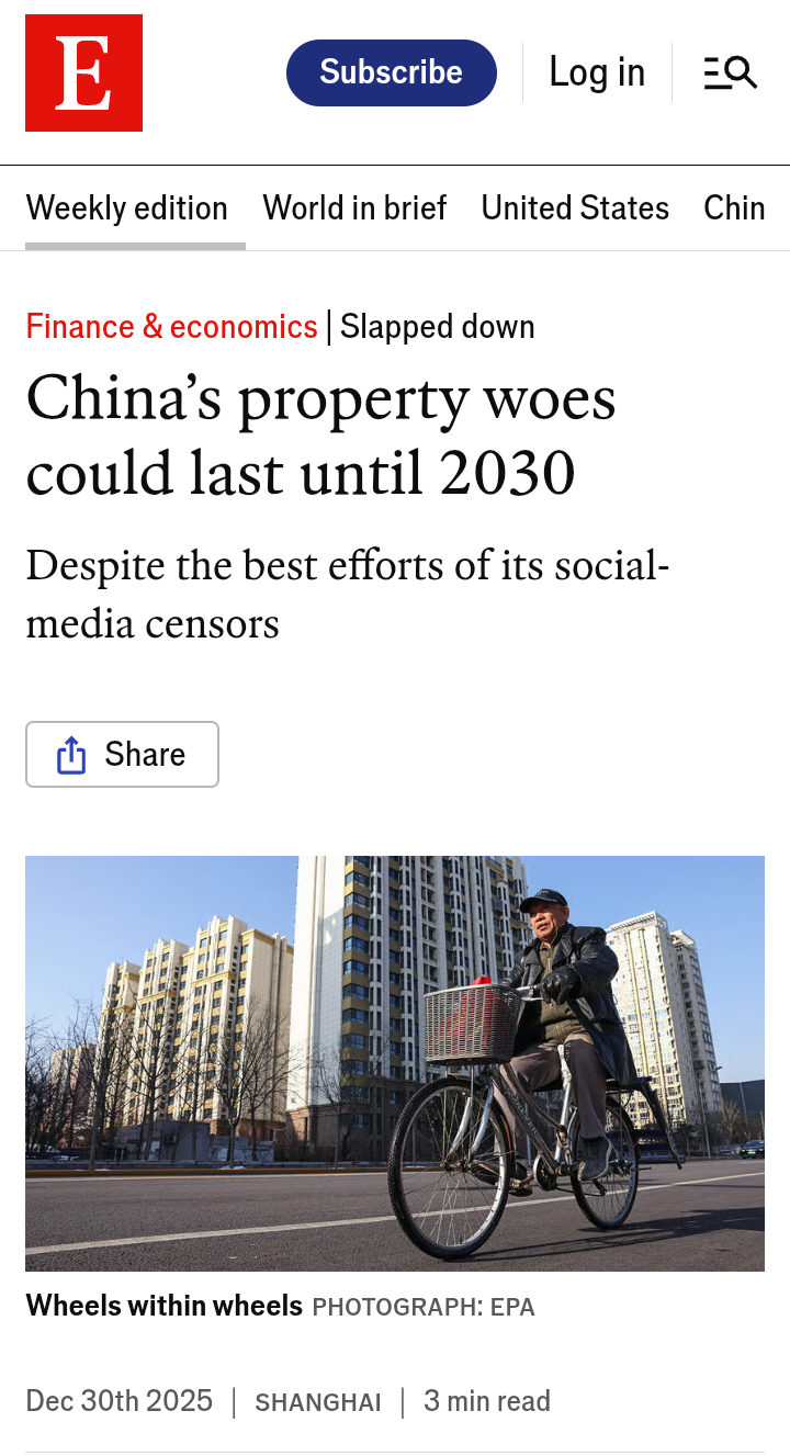 >>527675217Yeah retard, see how fucked the property market is in China because they can't grasp thisFrom The Economist:>Investors are keen to understand how much further, and for how much longer, prices will fall, since the crisis has profound implications for China’s financial industry. Lots of collateral held by banks is in some form of real estate, meaning that as prices drop so does the value of their assets.>A recent report by Enhance International looks at the price-to-rent ratios of existing homes in four large, representative cities—and offers a grim outlook for the next five years. The consultancy’s analysts believe that prices for non-new homes have another 40% to fall, despite having already dropped to their lowest in a decade. Even more worrying, they reckon that China’s property crisis may continue until 2030.>The central government’s failure to introduce a meaningful residential property tax is another factor. Although officials have promised such a levy for years, so far only small trials have taken place.>In the absence of a property tax, prices are likely to continue to fall slowly as owners come to terms with their losses and reluctantly put their investment properties up for sale. China’s social-media censors will be busy for a while yet.Lack of property taxes is pushing more people to be homeowners instead of rent, which paradoxically is pushing home value further down since a major reason that investors buy them is to rent them out