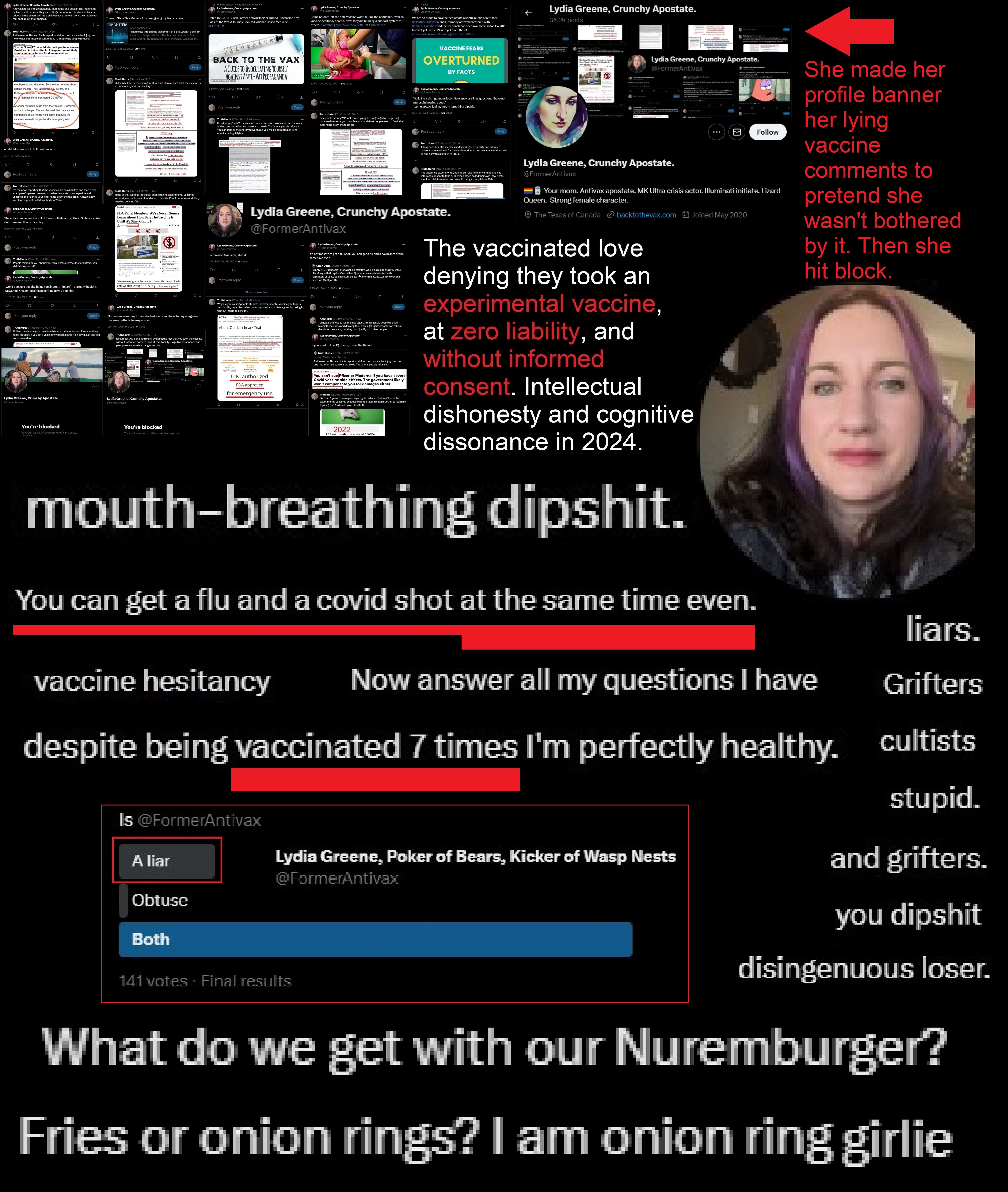 Look at how pregnancy risks work. People trying to justify the shots to others in 2026 deserve to be dragged through the street and shamed for life.