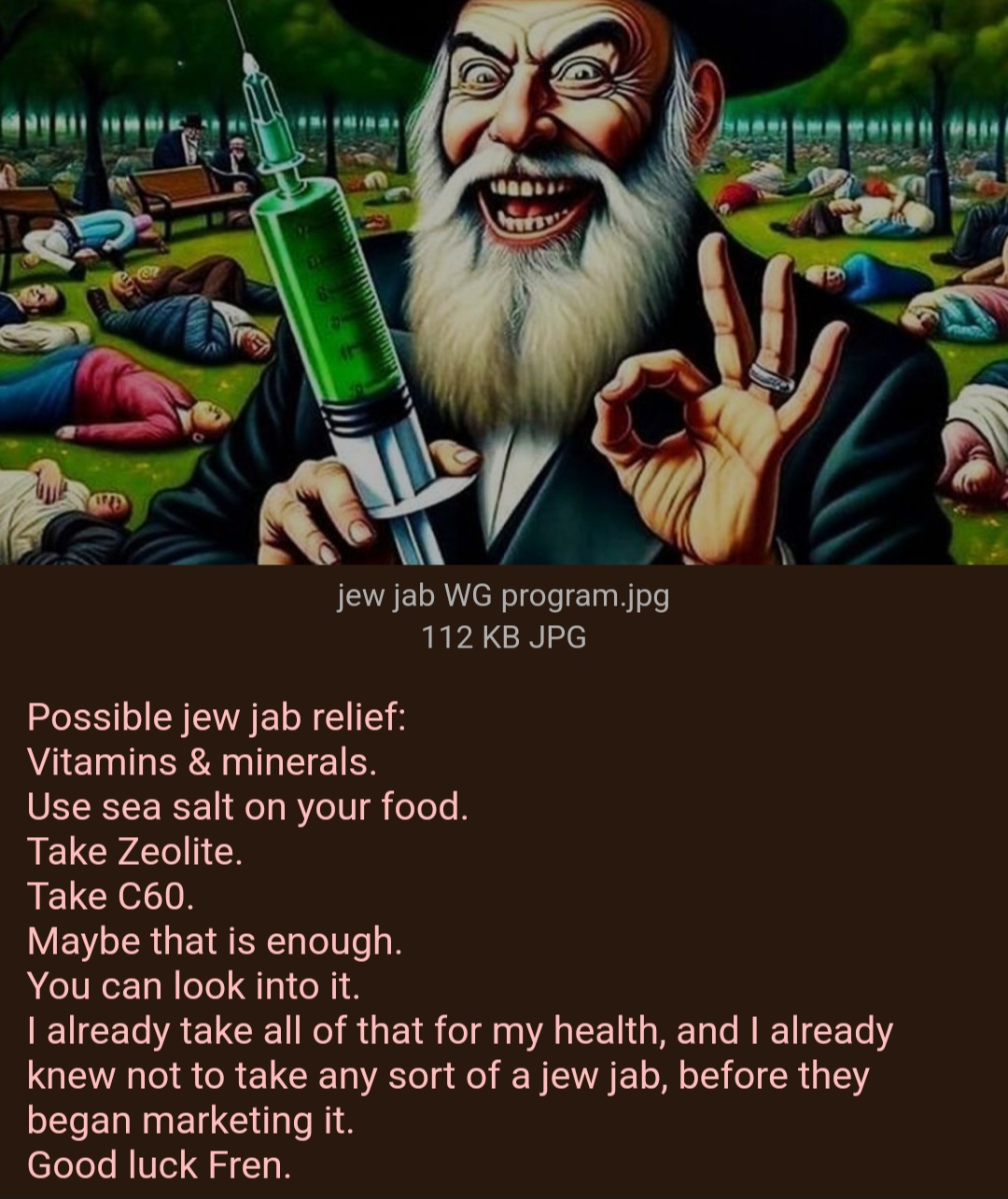 >>527697166Digits!Your dumb friends & family that took the jew jab could try this remedy, or do their own research.