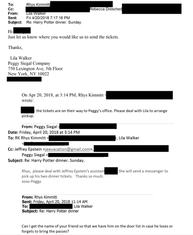 Epstein invited to a "Harry Potter dinner"
