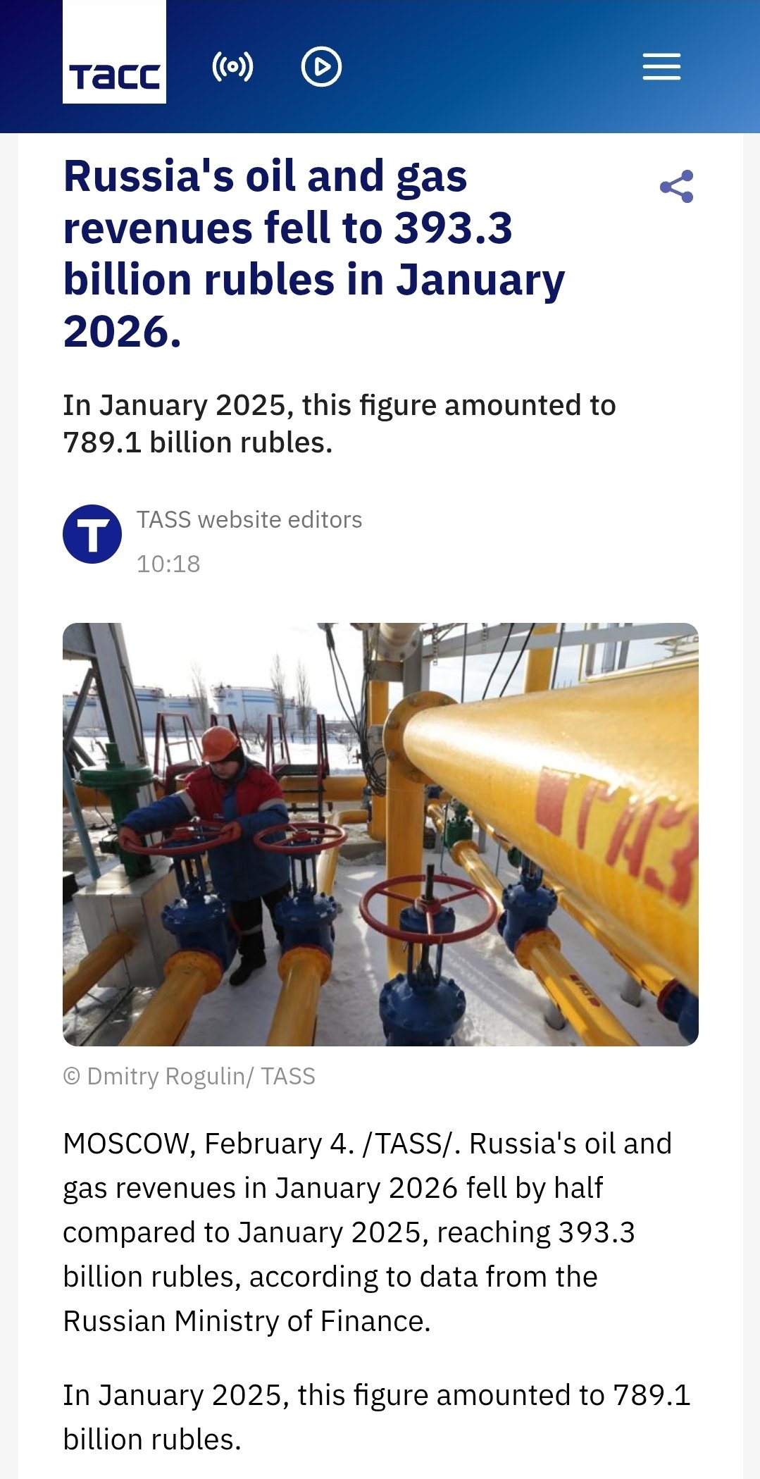 Less than 0.4T was generated in oil/gas tax revenues in January for the federal government according to Istrebin. This is the lowest sum since the war began.Afaik these taxed are levied on the previous month's prices so February revenue should be up a bit since oil climbed in January.It's funny that despite this the ruble remains optimistic. Which implies imports are really very bigly down.