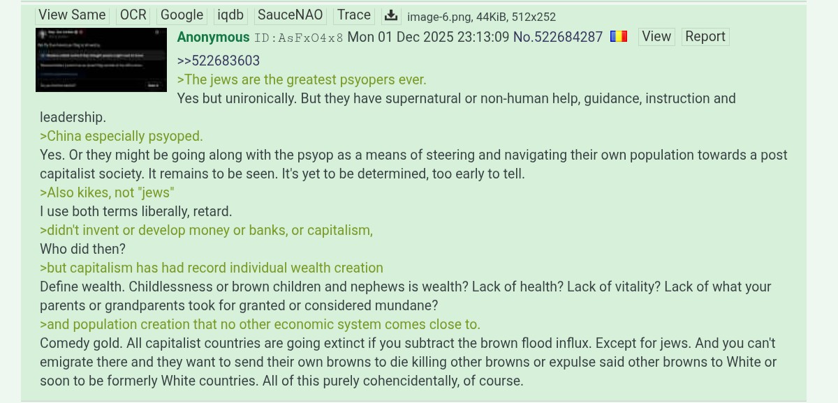 Be aware, any /chug/ thread that uses globohomo nuspeak wording in the OP (such as Kyiv) or cites UKROP sources (like video game footage) are fake shill threads.