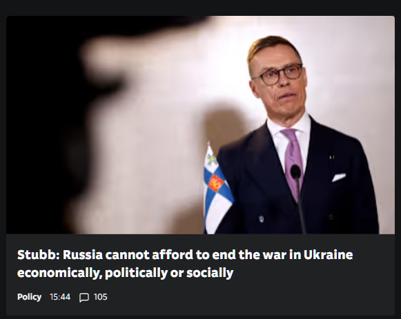 >Stubb: Russia cannot afford to end THD