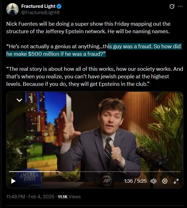 I still think it's crazy how groypers and the dissident right decided to go all in on "saying Epstein was good" when there is literally zero reason or benefit to do soThose jewish shekels must have hypnotic power