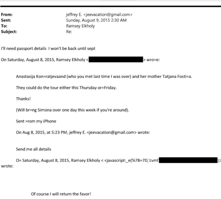 >>527791288>>527791345Further to what I promised, Epstein had an early morning meeting with Justin Nelson, CFO of JPMorganEFTA02586127 - Epstein's assistants providing suggestions for offshoring moneyEFTA00994519 - Epstein going with an additional later of obscurityEFTA02101190 - Epstein getting Russian and Belarus VISAs immediately after the meetingEFTA02099641 - The rare instance of a lackey giving up Epstein's availability for the next monthTo explain what all of this means, in 2014 JPMorgan realized they got hacked. They stopped the hack in August and announced they were hacked in September. Two Israelis were indicted (Gery Shalon and Ziv Orenstein; may or may not be related to other July 30 emails about Moshe staying at one of Epstein's apartments). Hard seeing what the fallout from the hack was, but this all looks like a smoking gun to me