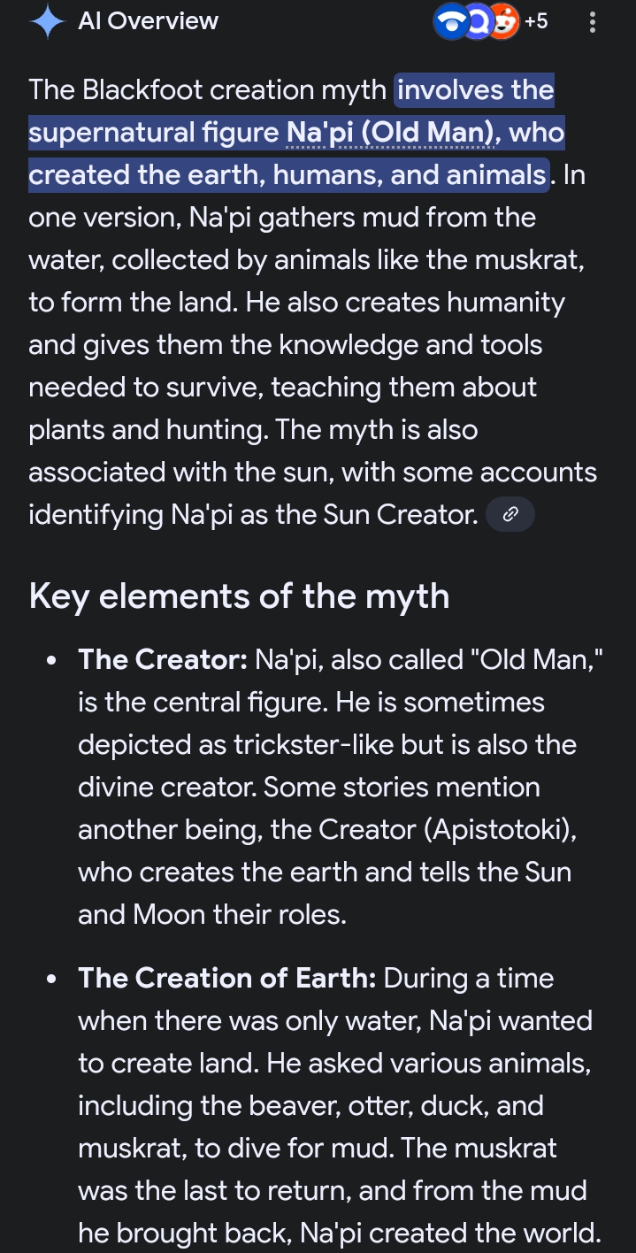 The Blackfoot creation myth and Biblical creation myth are a near 1:1 of eachother. The Blackfoot had ancient Aryan ancestors in North America that passed this info down to the people.