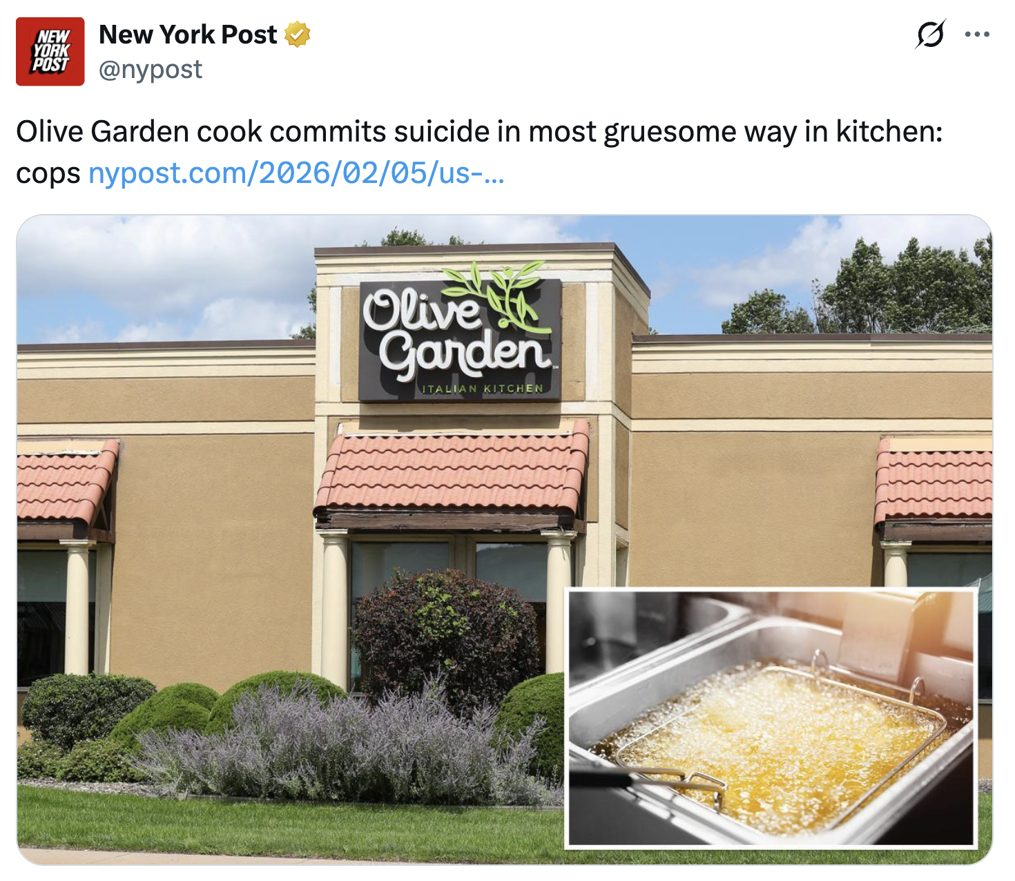 Is working a 9-5 that bad?https://nypost.com/2026/02/05/us-news/olive-garden-cook-commits-suicide-in-most-gruesome-way-in-kitchen-cops/