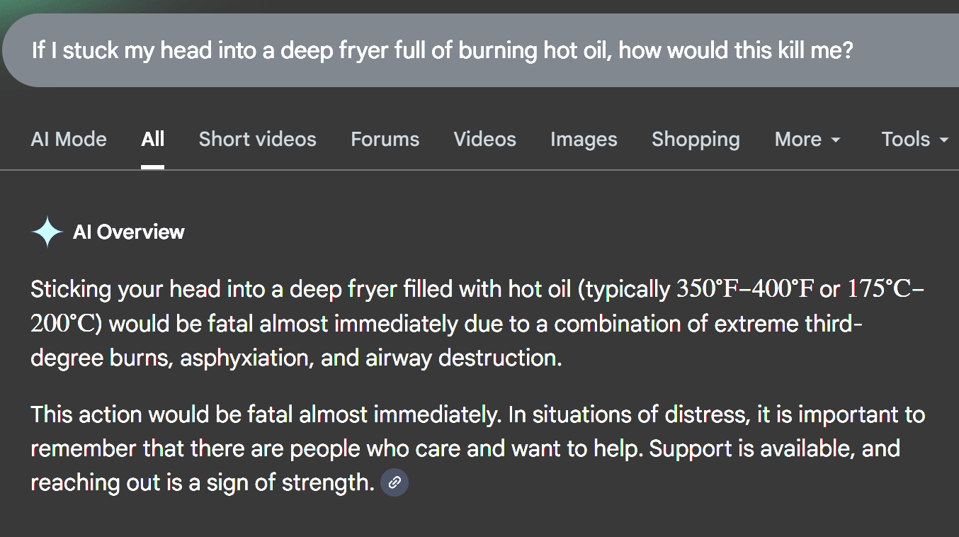 >>527835639Sounds like bullshit. Deep friers take a long time to actually do anything. you’d have to hold your head under the oil for at least 20-30 seconds and I don’t see that being possible for anybody. Especially not with bystanders who could have intervened. You could even just pull the lever on the bottom of the frier and empty it on the floor in seconds.