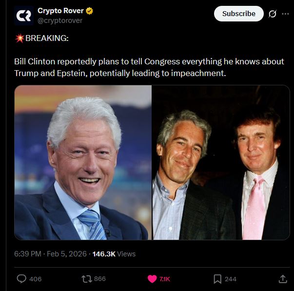I wonder if Epstein blaming Clinton for the financial crisis in the released Bannon interview caused this.