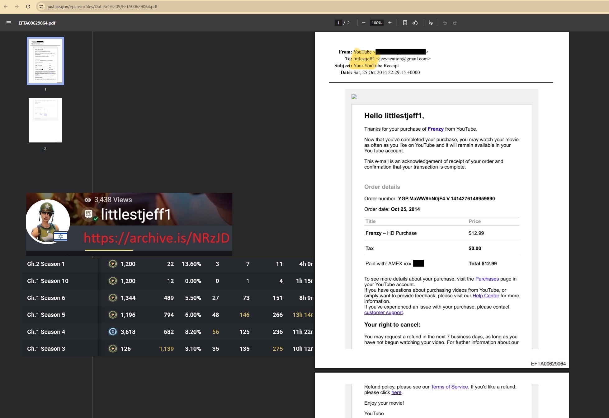 HOW DOES LIFE WORK?https://www.justice.gov/epstein/files/DataSet%209/EFTA00629064.pdfProfile now private:https://fortnitetracker.com/profile/all/littlestjeff1/seasonsThe INTERNET DOES NOT FORGET, JEFF:https://archive.is/NRzJD
