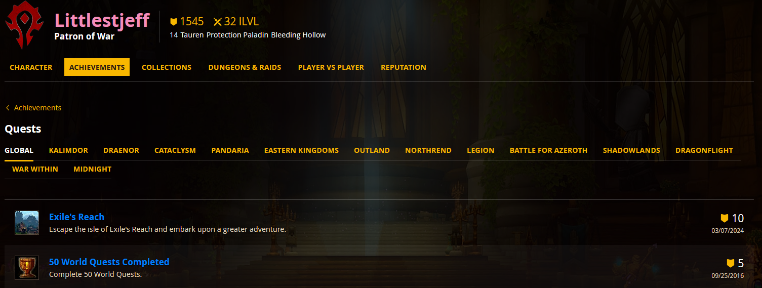 https://worldofwarcraft.blizzard.com/en-us/character/us/bleeding-hollow/littlestjeff/achievements/questswow also kek