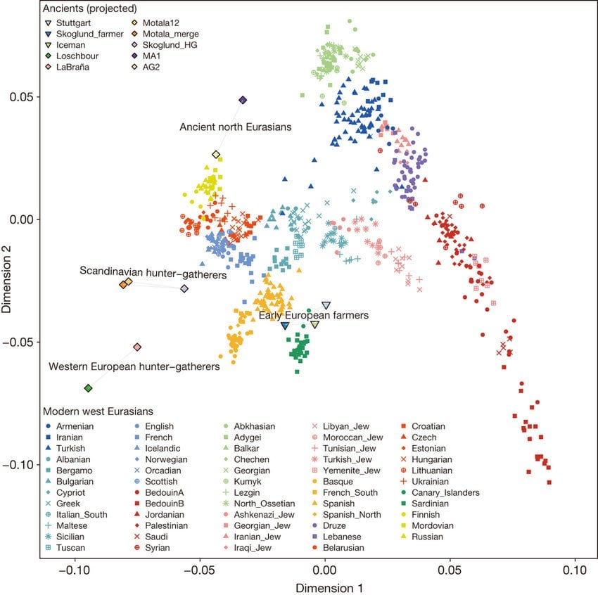 >>527914614I am going to be honest with you, I am not educated in genetic science. However, i know that if you are going to define White by genetics alone, you can’t call Hasan a not White purely by looking at him and without analysing his genetic material, because even if he ends up not being white, Turks as a group do not fall too far away from the reference White cluster. Hence there is a chance he is actually one of the White samples in it.