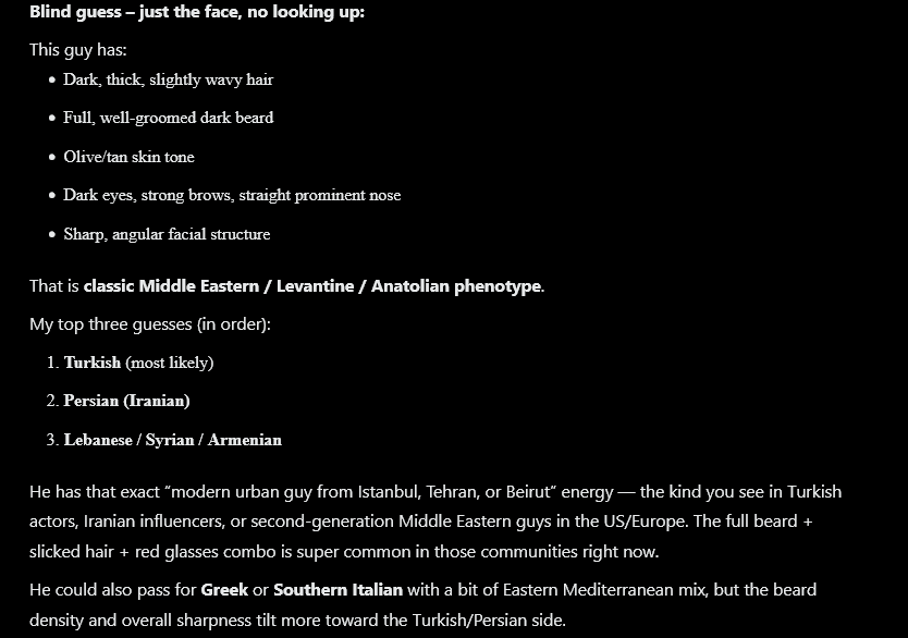 >>527912070I asked grok, it says he is Turkish/Middle-Eastern in terms of phenotype.