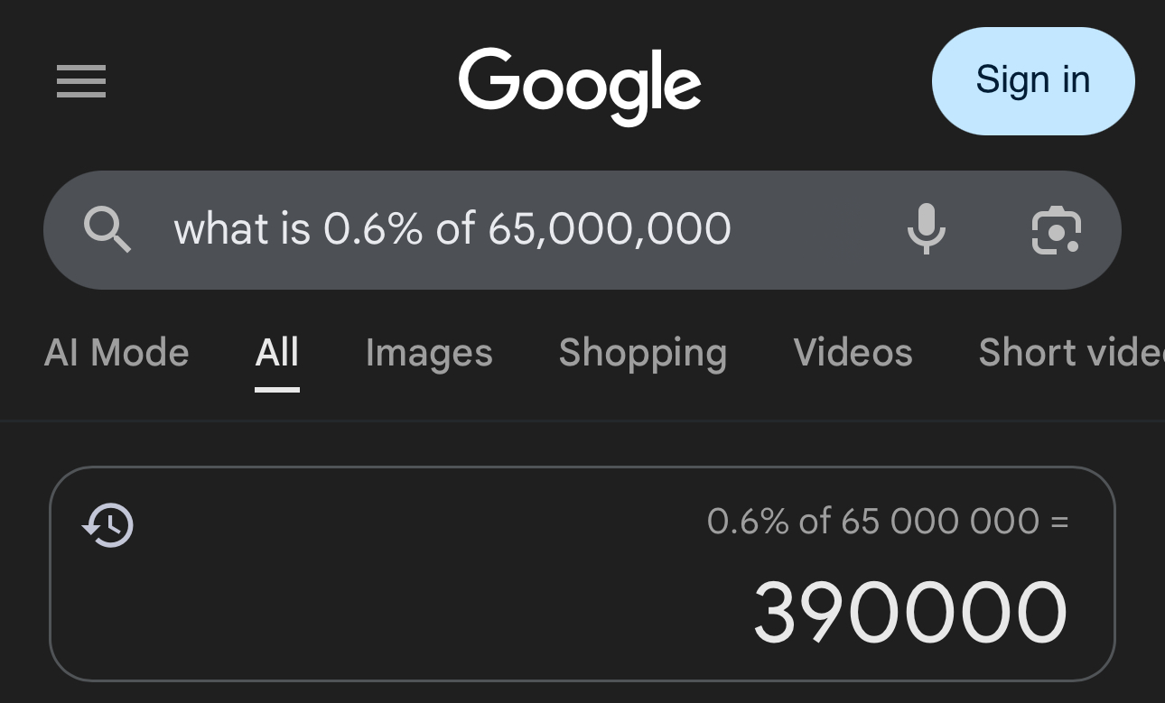 After 400,000 of the 1,000,000 police are gone then it’ll be full blown civil war so that 0.6% will go wayyyy up.