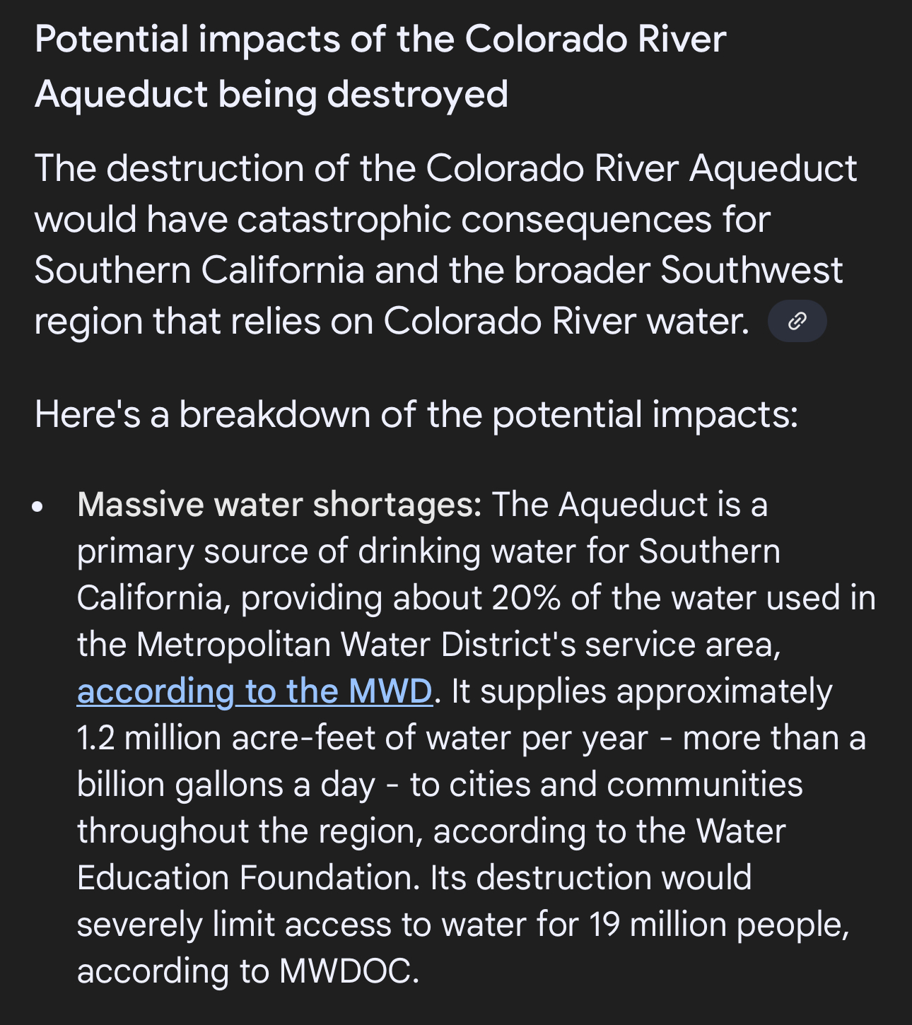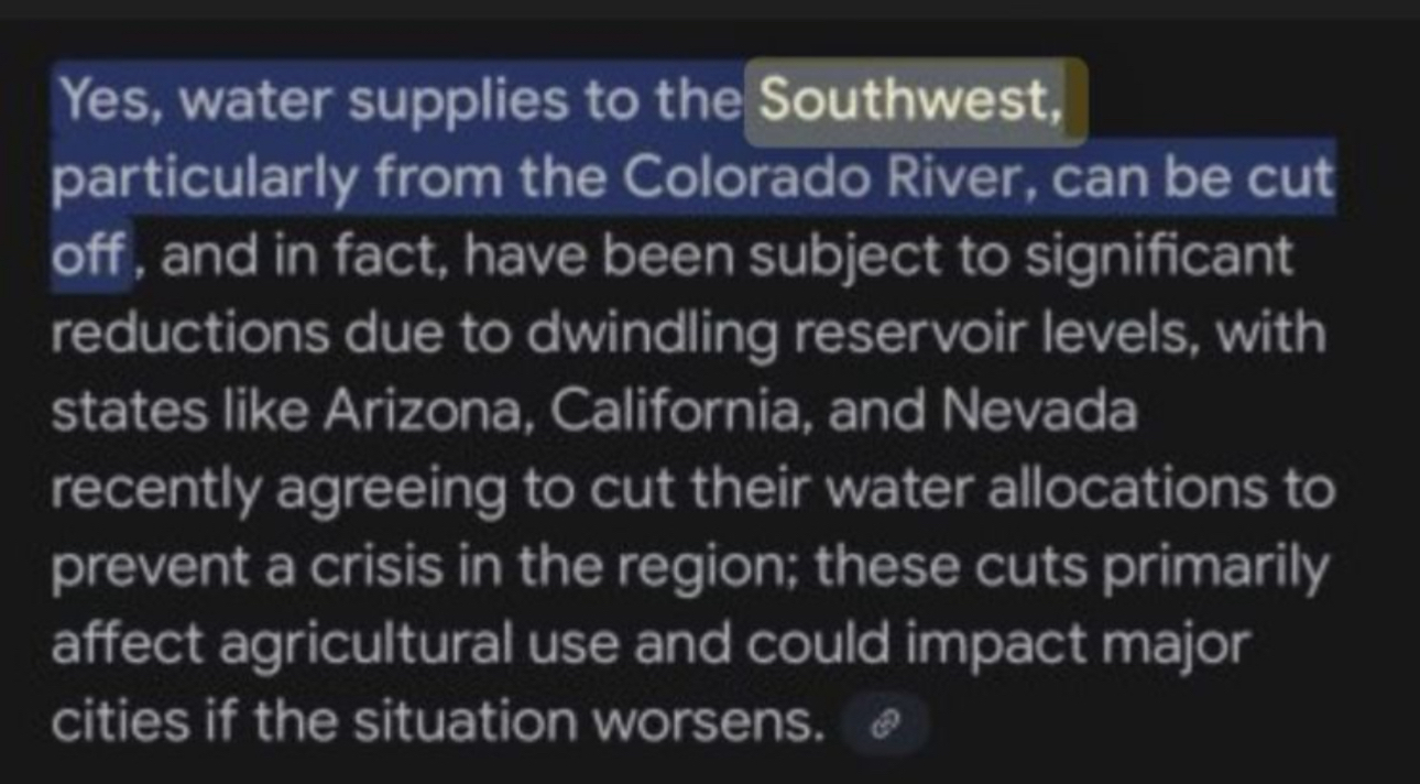 >>527934127The facility that controls the water is susceptible to aerial bombardment. In order to prepare for this the goblino mutts would need to start building desalination plants from now but that’s not going to happen lol