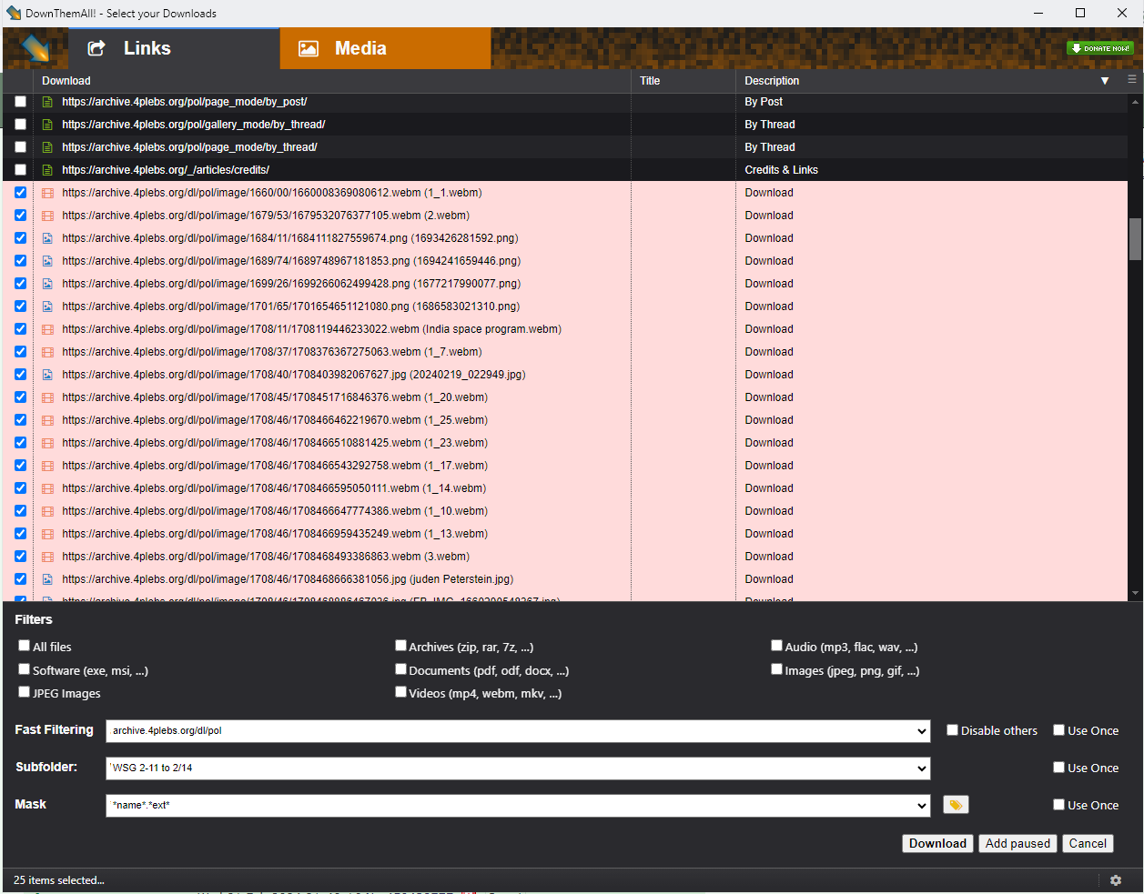 If phonefagging or don't want an extension, use any of the greasyfork downloader scripts for 4chanx> Firefox Android> iOS Orion Browser> Any Laptop Browser> Such as https://greasyfork.org/en/scripts/550662-4chan-dl/post-installBULK FILE DOWNLOADER EXTENSIONI recommend using a downloader extension, to download the many files from this thread as well as past threads.I will not give my approval for one extension or another, but will simply leave that up to you guys to decide. I simply downloaded mine based upon highest install quantity and rating.This way you can save the original file names, without chan renaming the file to random numbersThis way you don't have to click on each one to downloadIt will download all the media files or links within a webpage, and allow you to choose the file types that you want.>Like DownThemAll among others (I don’t endorse it, it’s simply the first name that came up for DL Volume & Ratings
