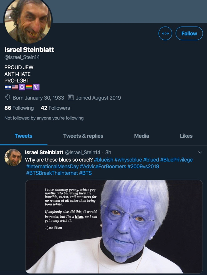 SEE QUOTE IN PICREL> If The Original Text Accompanying The Image Said Jew Or Jews REPLACE THE WORD JEW AND JEWS WITH BLUE AND BLUES> ****DO NOT USE THOSE HASHTAGS****Twitter will ban/shadowban you