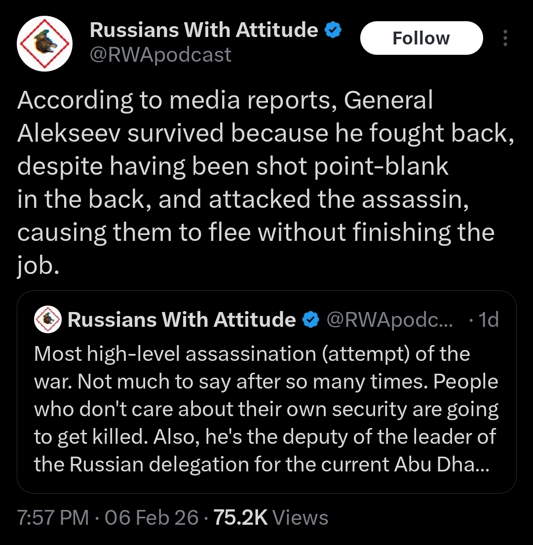 >>527956634>People who don't care about their own securityI don't like this. Badmouthing your GRU deputy director amidst a war for independence of part of your own Russian people. Few institutions have done more for Russia than Russian military intelligence. I like RWA, but this is disrespectful and out of line.