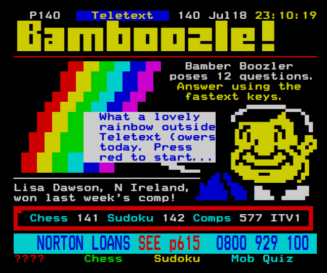 When I was a kid in the 80s, if you wanted to go on /pol/, the only way to do it was through Ceefax on TV. The tech worked because some of the lines used to make up the tv picture could be used to send information about text, so it was possible to broadcast text images. There were bunches of pages about the weather, news, TV shows, but in our house it was always on the /pol/ page. It took fucking ages to type in text for a thread. There wasn't a keyboard, just the TV remote, with the numbers, but it felt like magic.