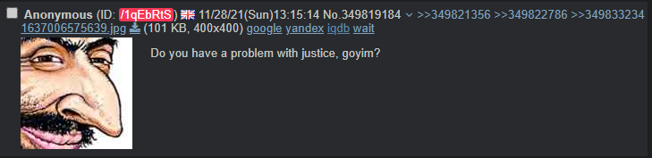 >>527968805>memeflag thinks there will be justice and people will work together Where have you been the last 50+ years nigger? Consequences are for goyim you stupid faggot.